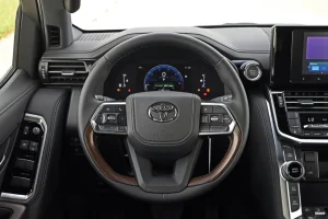 Additionally designed for comfort and capability. Furthermore Toyota enhances safety and control with a full suite of advanced technologies. Including ABS, BA, VSC, ATRC, HAC, DAC, and TSC. Furthermore Crawl Control, and Trailer Assist—making it ideal for towing, off-road adventures, and unpredictable environments. The exterior showcases a bold and premium look with 20-inch alloy wheels, LED headlamps with DRLs, and chrome-silver grille. Furthermore color-keyed bumpers, roof rails, side steps, and a stylish rear spoiler. The new GXR side stripe design enhances its road presence. While the sun/moonroof adds an open, airy feel to every journey.